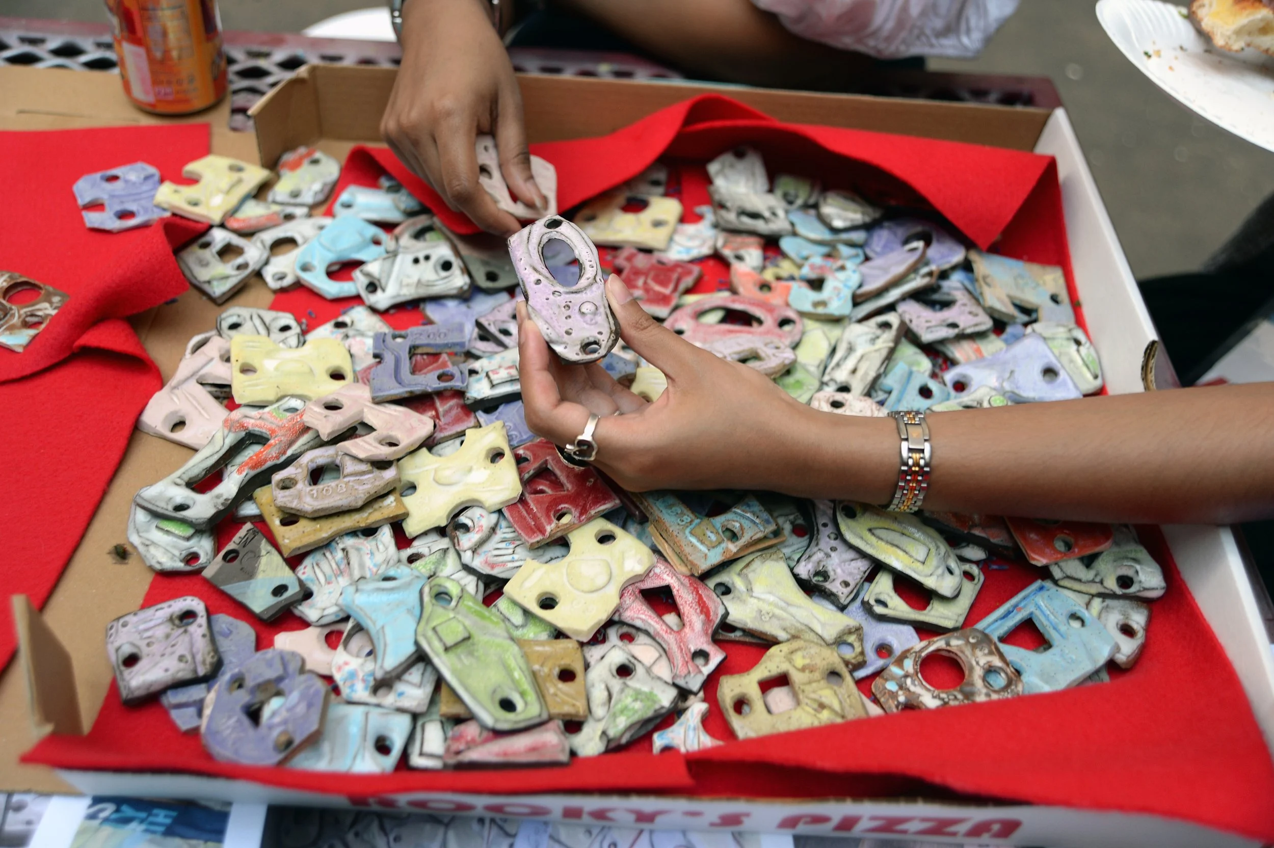 I am interested in activating communities with beads. This started in 2022 when I attended the Flaherty Seminar for the 6th time since 2000. I brought a handful of beads with me to share as a kind of offering/ice-breaker (I’m shy!). Putting them on our name tag lanyards transformed them into something else and I was thrilled to be invited to create a set of 200 beads for the 70th Flaherty Seminar that echoed the visual identity for the year’s Seminar inspired by Bill Brand’s public artwork Masstransiscope. An honor and thrill to be part of this!
